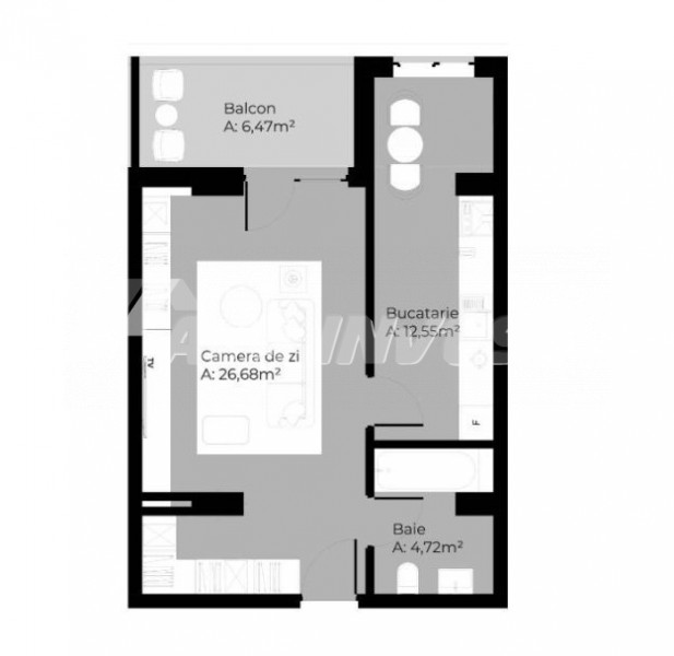 Apartamentul are o suprafață utilă de 43,95 mp și dispune de un balcon de 6,47 mp. Compartimentarea este bine gândită, cu bucătărie separată, oferind un plus de confort și funcționalitate. Se vinde în stadiu semifinisat, ceea ce permite amenajarea spațiului în funcție de preferințele viitorului proprietar.