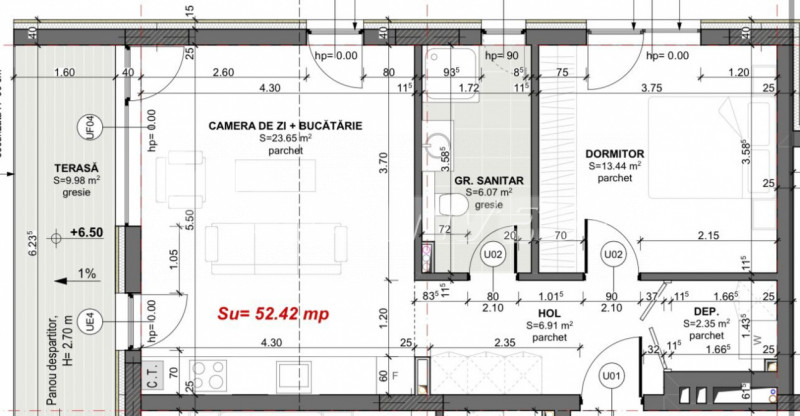 Apartamentul se vinde semifinisat. Dispune de centrală termică proprie, încălzire în pardoseală, geamuri termopan și ușă metalică la intrare. Baia se preda finisată cu gresie și faianță.