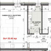 Apartament cu 2 camere de vânzare în Apahida, zona străzii Libertății. Suprafața utilă este de 52,42 mp. Compartimentarea este semidecomandată și cuprinde hol, living cu bucătărie open-space, dormitor, baie și balcon spațios de 9,98 mp.