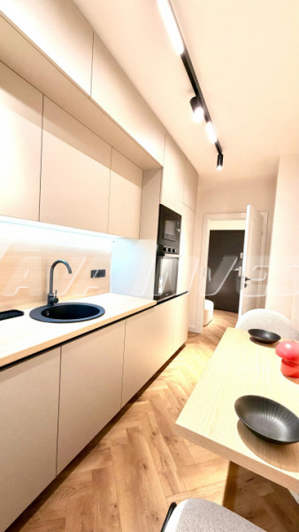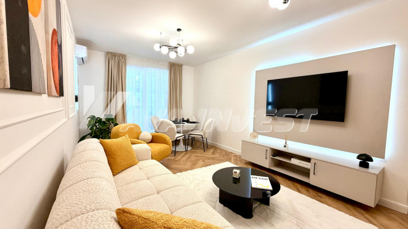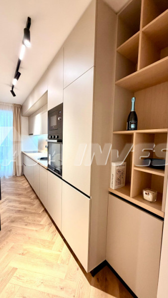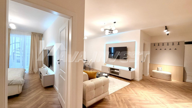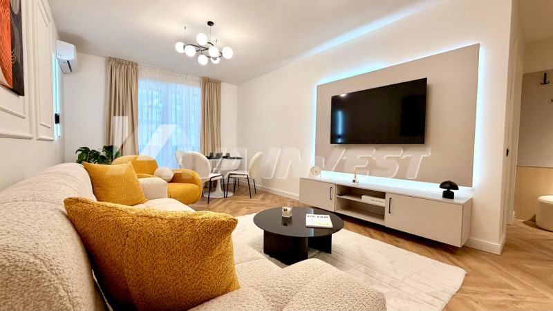 Apartamentul se vinde cu mobilier realizat pe comandă, electrocasnice noi încorporate, iluminat ambiental, parchet de calitate superioară și placări ceramice moderne. Este complet pregătit pentru a fi locuit, fără investiții suplimentare.