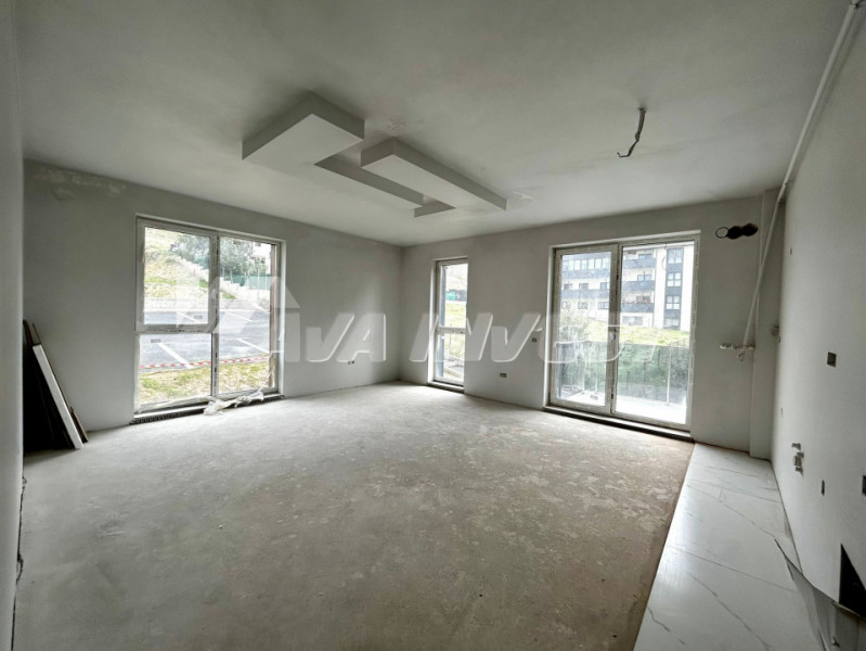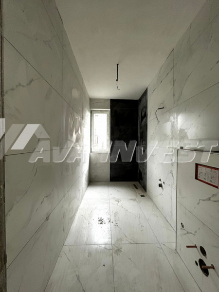 Apartamentul se vinde semifinisat. Este dotat cu centrală termică proprie, încălzire în pardoseală, geamuri termopan și ușă metalică la intrare. Baia este finisată cu gresie și faianță.