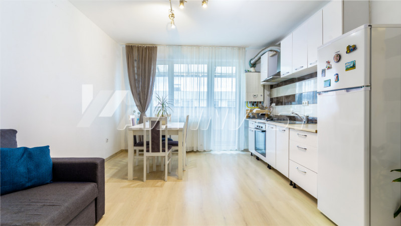 Apartamentul este compartimentat astfel: hol, living open-space cu bucătărie, 2 dormitoare, baie cu cadă și terasă luminoasă.