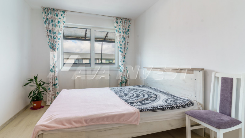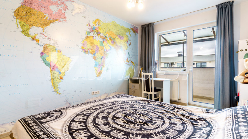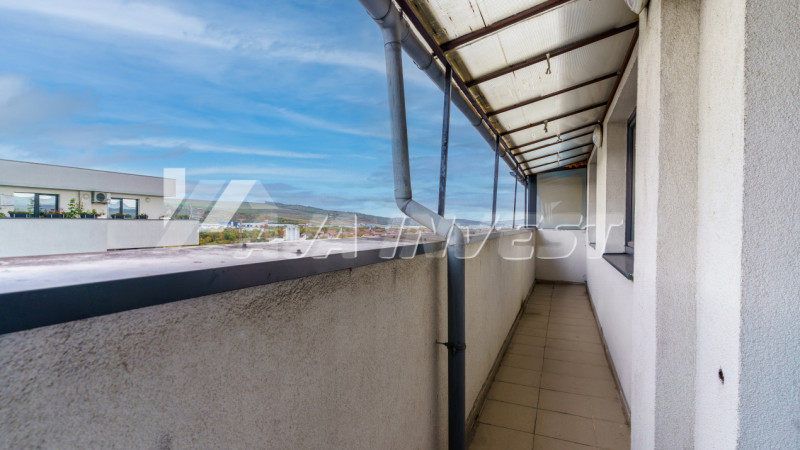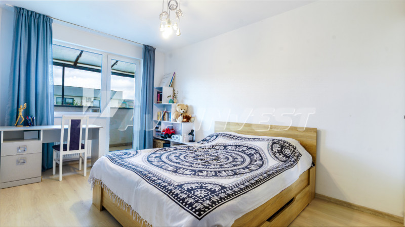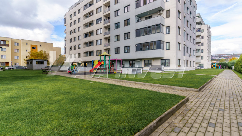 Vă prezint spre vânzare un apartament cu 3 camere, 57,39 mp utili și terasă de 9,31 mp, situat la etajul retras (7) într-un ansamblu cu spații verzi și loc de joacă pentru copii.