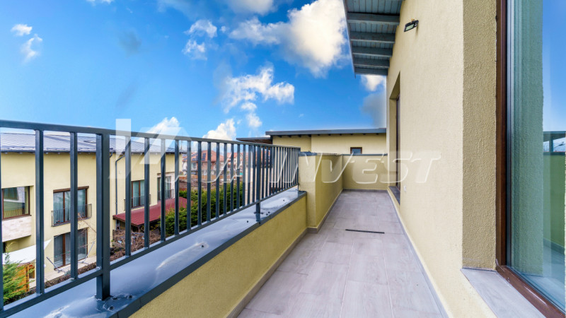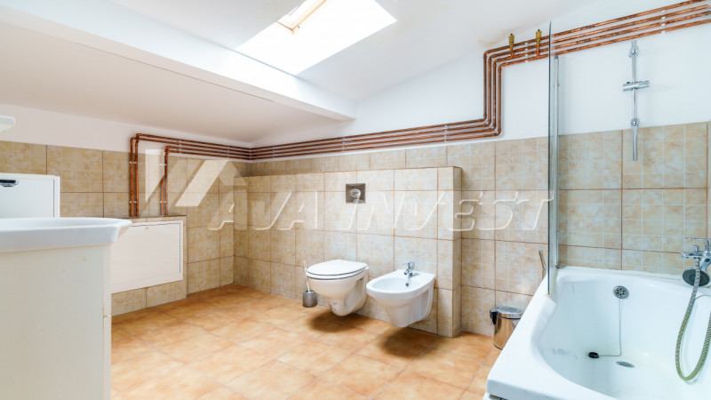 Mansardă: dormitor matrimonial cu baie proprie și terasă privată.