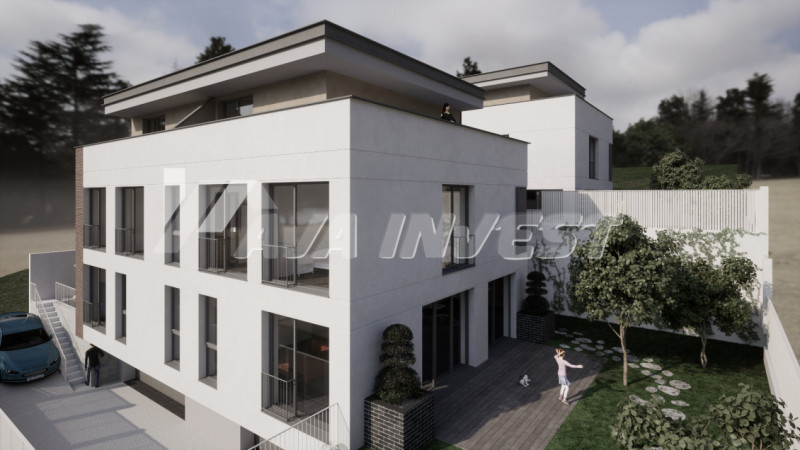 Terenul are o suprafață totală de 500 mp, fiind compus din parcela construibilă de 450 mp și o cotă parte de 50 mp din drumul de acces.